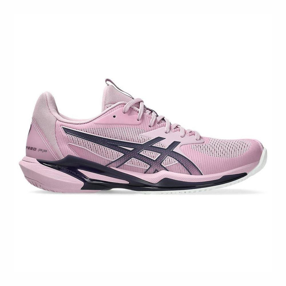 ASICS Solution Speed FF 3 1042A250-700 có trọng lượng siêu nhẹ chỉ khoảng 240g, độ dốc 6mm với chiều cao đế cân bằng, giúp tiếp đất mượt mà. Thiết kế true to size với khoang mũi rộng rãi, phù hợp cho bàn chân nữ, cùng màu Light Ube/Indigo Fog tạo vẻ ngoài hiện đại và nữ tính. Đế ngoài được tạo hình theo thuật toán để tối ưu hóa độ bám và linh hoạt.